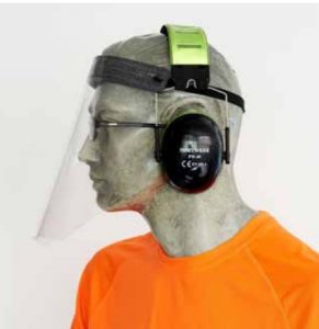 Un exemple est l’écran de protection EPI avec une bande de mousse qui s’adapte directement sur la tête de l’utilisateur.